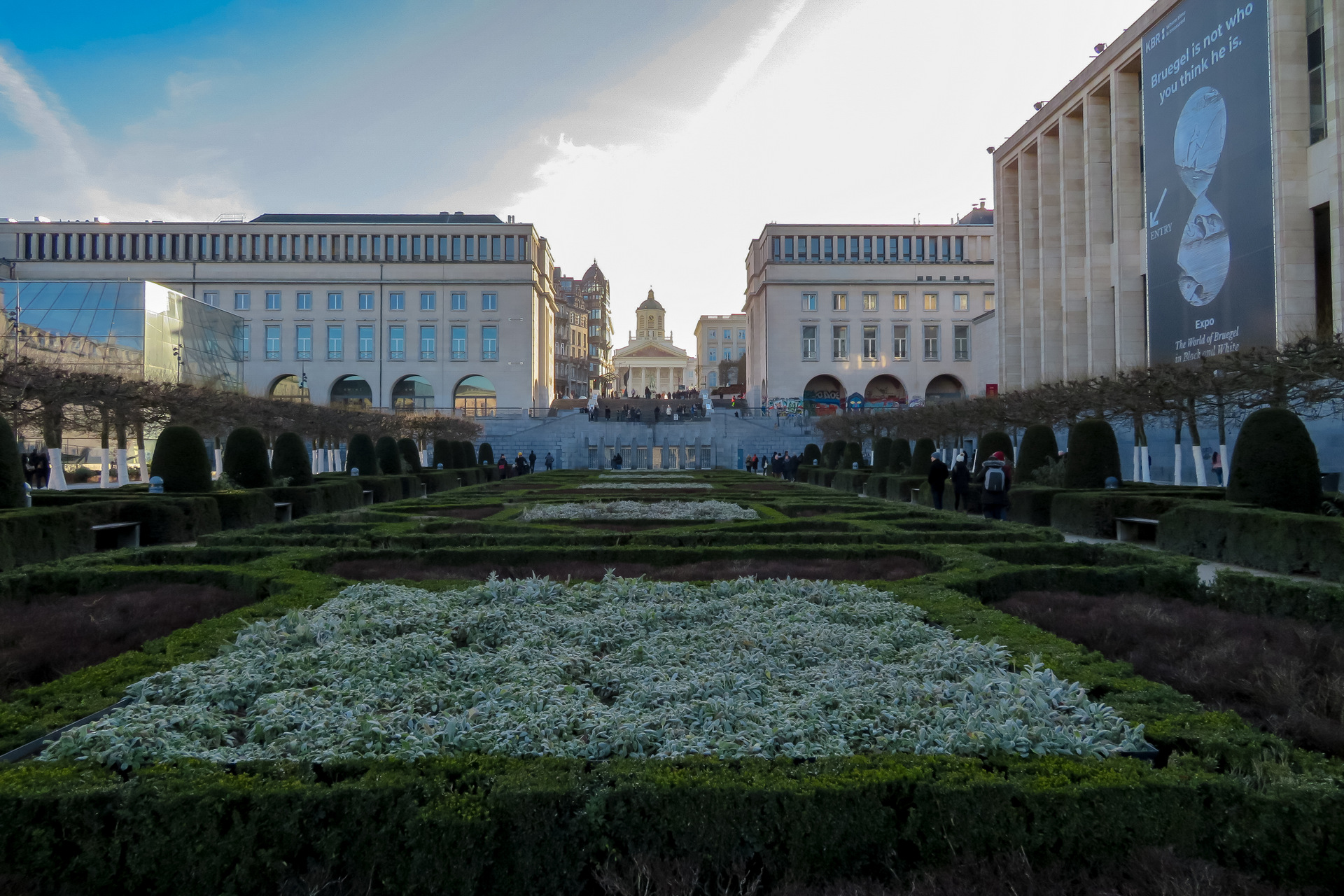 Dirígete hacia el Mont des Arts, un jardín elevado con una de las mejores vistas panorámicas de la ciudad, ideal para una pausa y algunas fotos. Muy cerca está el Palacio Real, antigua residencia de la monarquía belga. Solo es visitable en verano, pero merece la pena admirar su fachada y pasear por el Parque de Bruselas, justo enfrente.