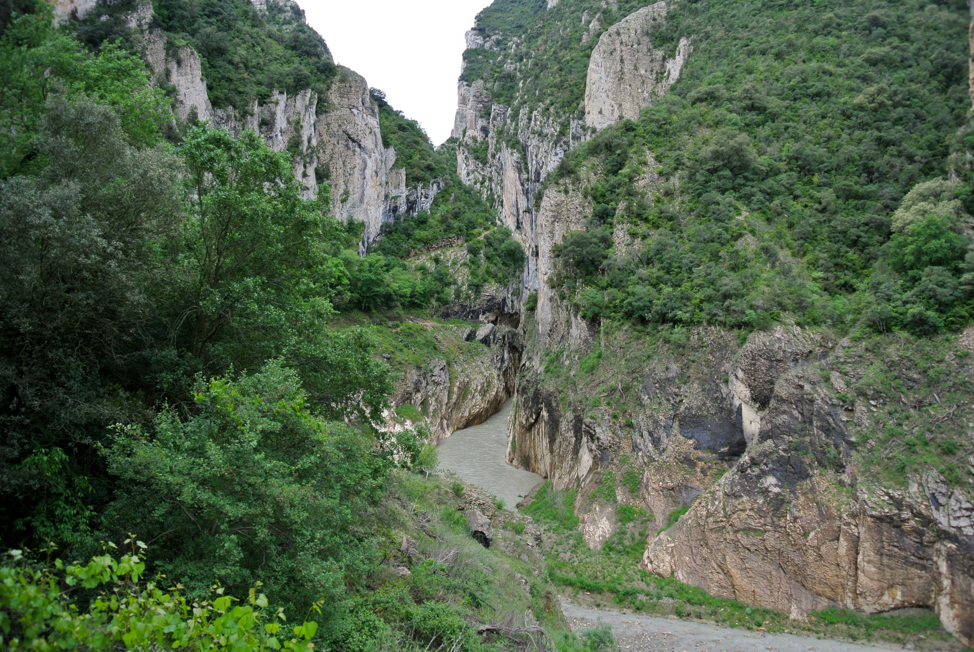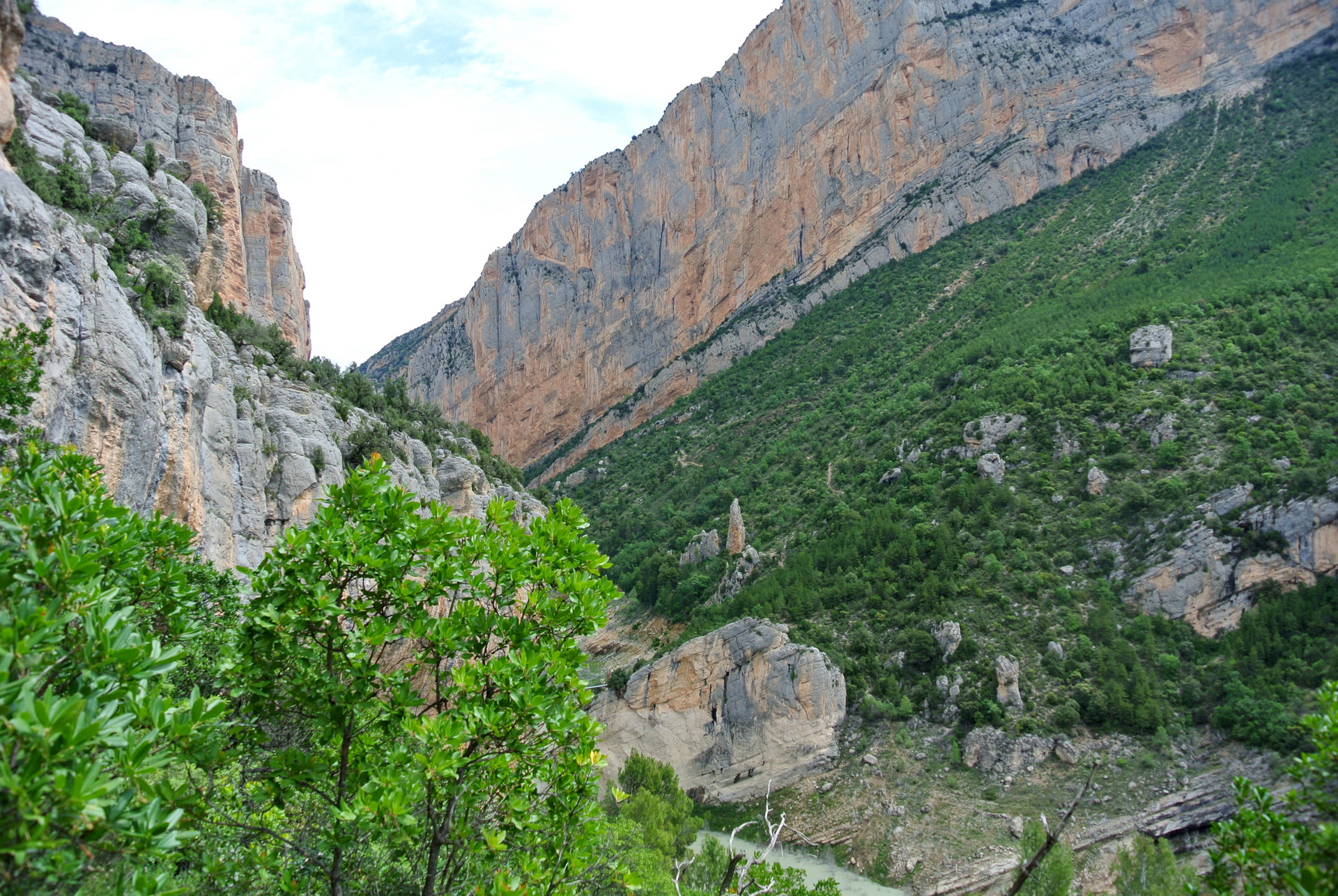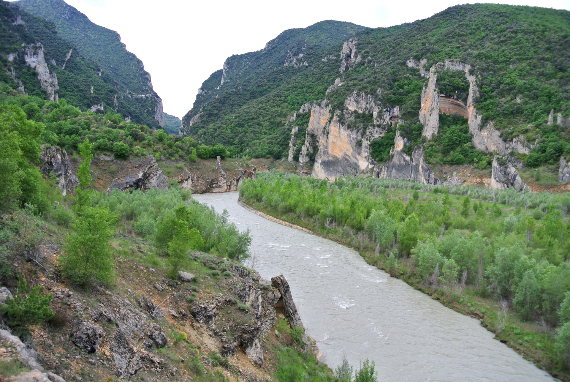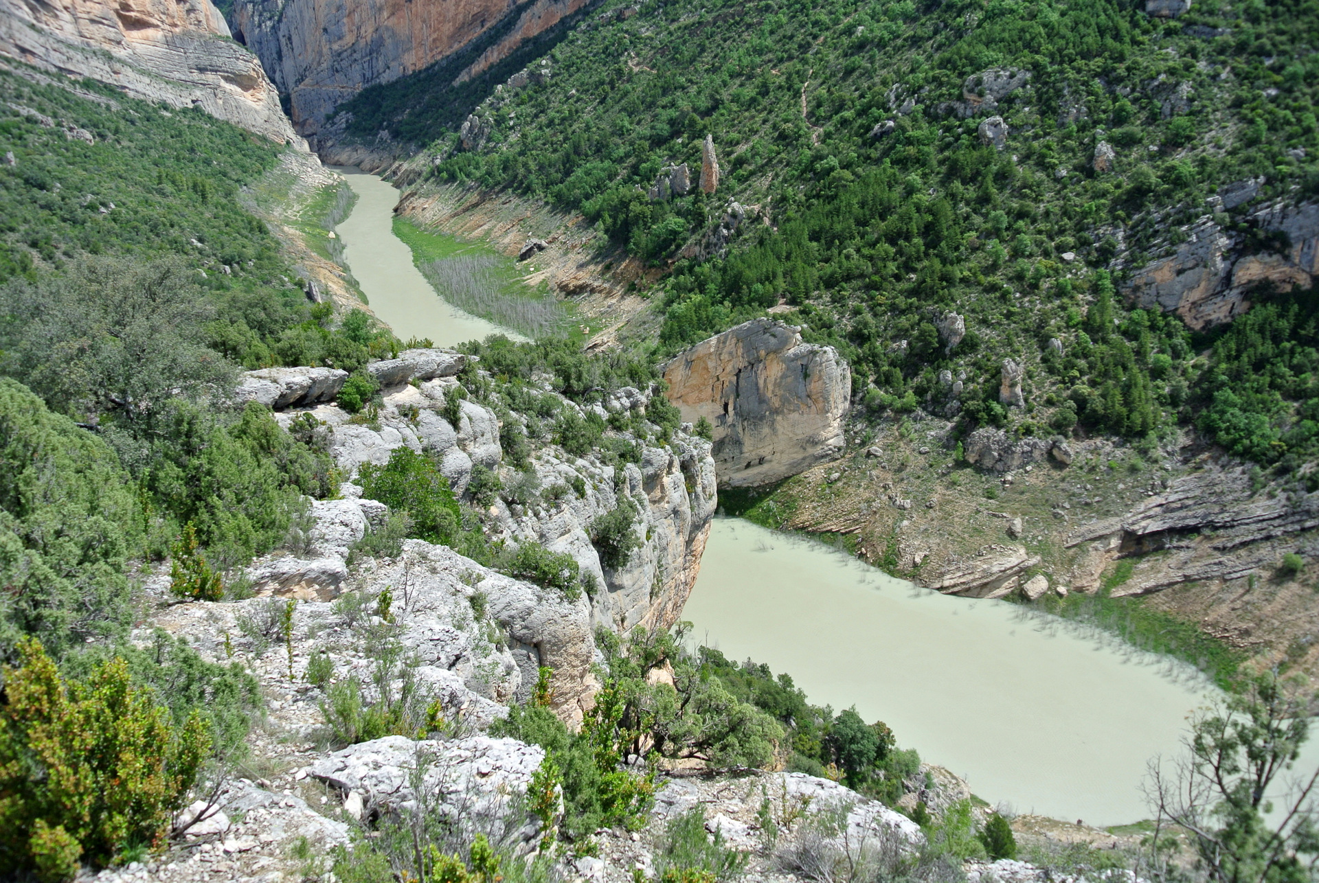 El Congost de Montrebei es uno de esos lugares que parecen sacados de un sueño: un desfiladero natural que separa las provincias de Lleida (Catalunya) y Huesca (Aragón), esculpido por el río Noguera Ribagorçana a través de la imponente sierra del Montsec. Sus paredes verticales de más de 500 metros y la anchura mínima de apenas 20 metros en algunos tramos lo convierten en uno de los paisajes más espectaculares y salvajes de la península.