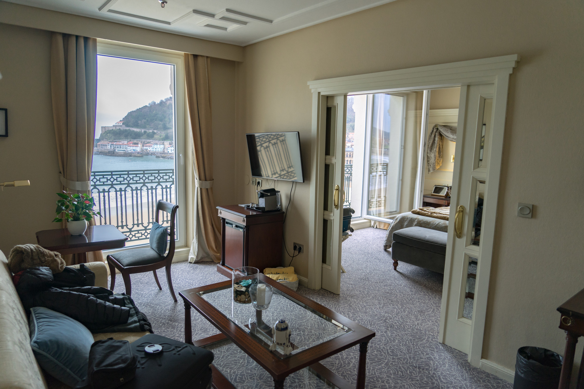 El hotel cuenta con 166 habitaciones, muchas de las cuales tienen vistas a la bahía, al Monte Urgull o al Monte Igueldo. Si buscas una experiencia inolvidable, merece la pena reservar una de las habitaciones superiores o suites en las plantas más altas, donde las vistas son simplemente espectaculares. Todas disponen de aire acondicionado, TV vía satélite, WiFi y baños modernos.