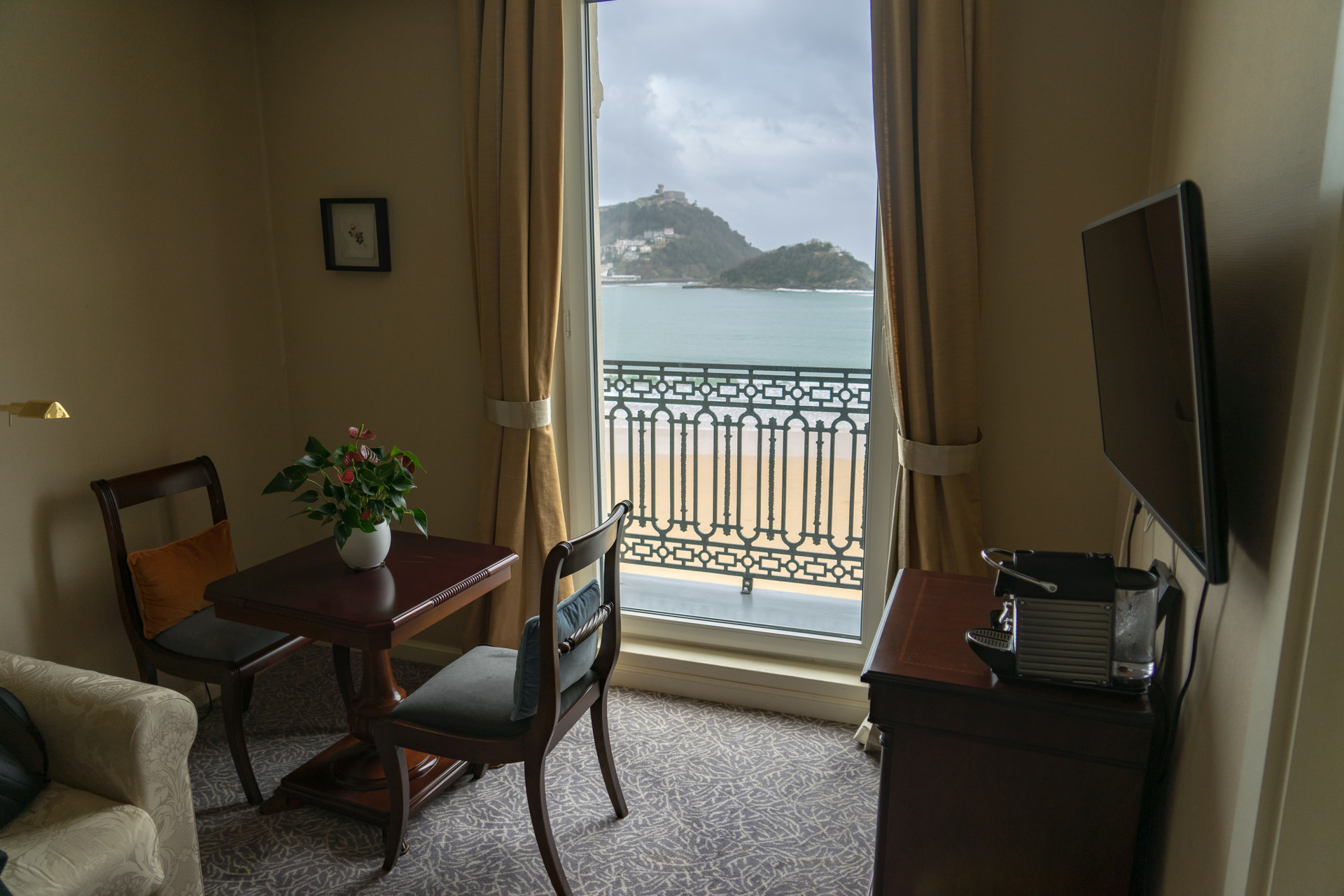 Situado en pleno Paseo de La Concha, este hotel de 4 estrellas presume de una ubicación privilegiada: a la derecha, la animada Parte Vieja donostiarra; a la izquierda, el emblemático paseo marítimo; y justo frente a ti, la famosa bahía con su playa de postal. Desde aquí puedes llegar caminando a los principales puntos de interés de la ciudad, disfrutar de la playa o perderte por las calles llenas de vida del centro.