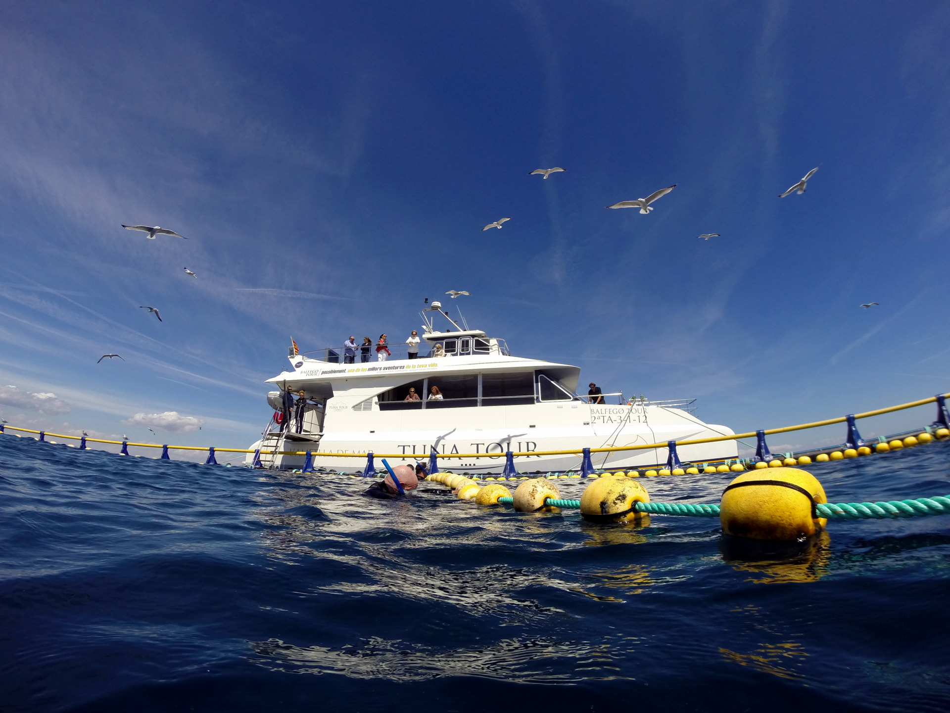 Tuna Tour es una actividad en l’Ametlla de Mar que combina paseo en catamarán, baño con atunes rojos y degustación de atún. La experiencia consiste en salir desde el puerto pesquero, recorrer unos minutos mar adentro y zambullirse, con snorkel, en una gran piscina flotante donde nadan enormes atunes de cerca de dos metros. Es una excursión apta para familias, amigos o curiosos con interés por la vida marina; todo está enfocado a disfrutar del entorno y aprender algo sobre el atún rojo y la pesca sostenible​
