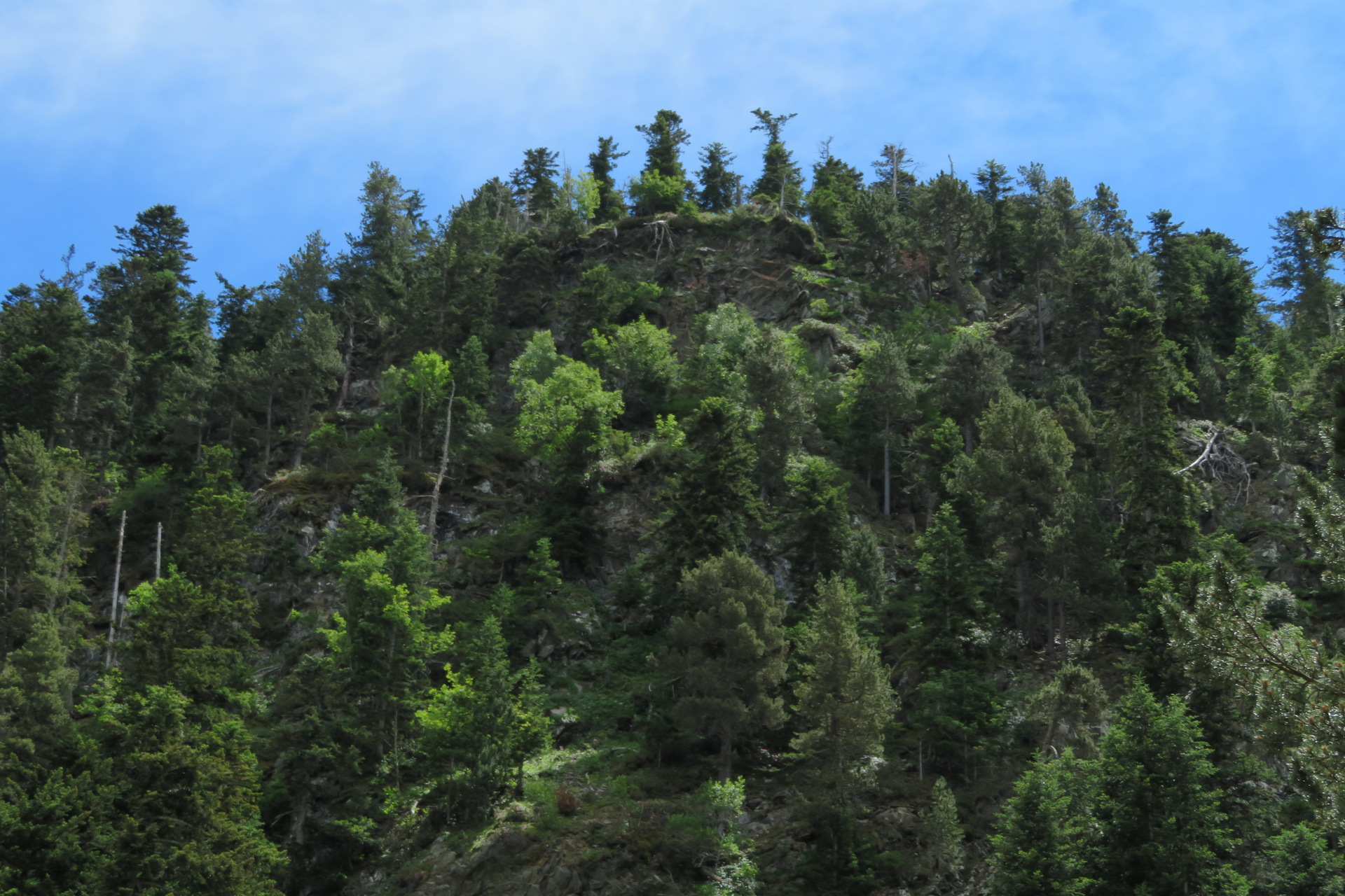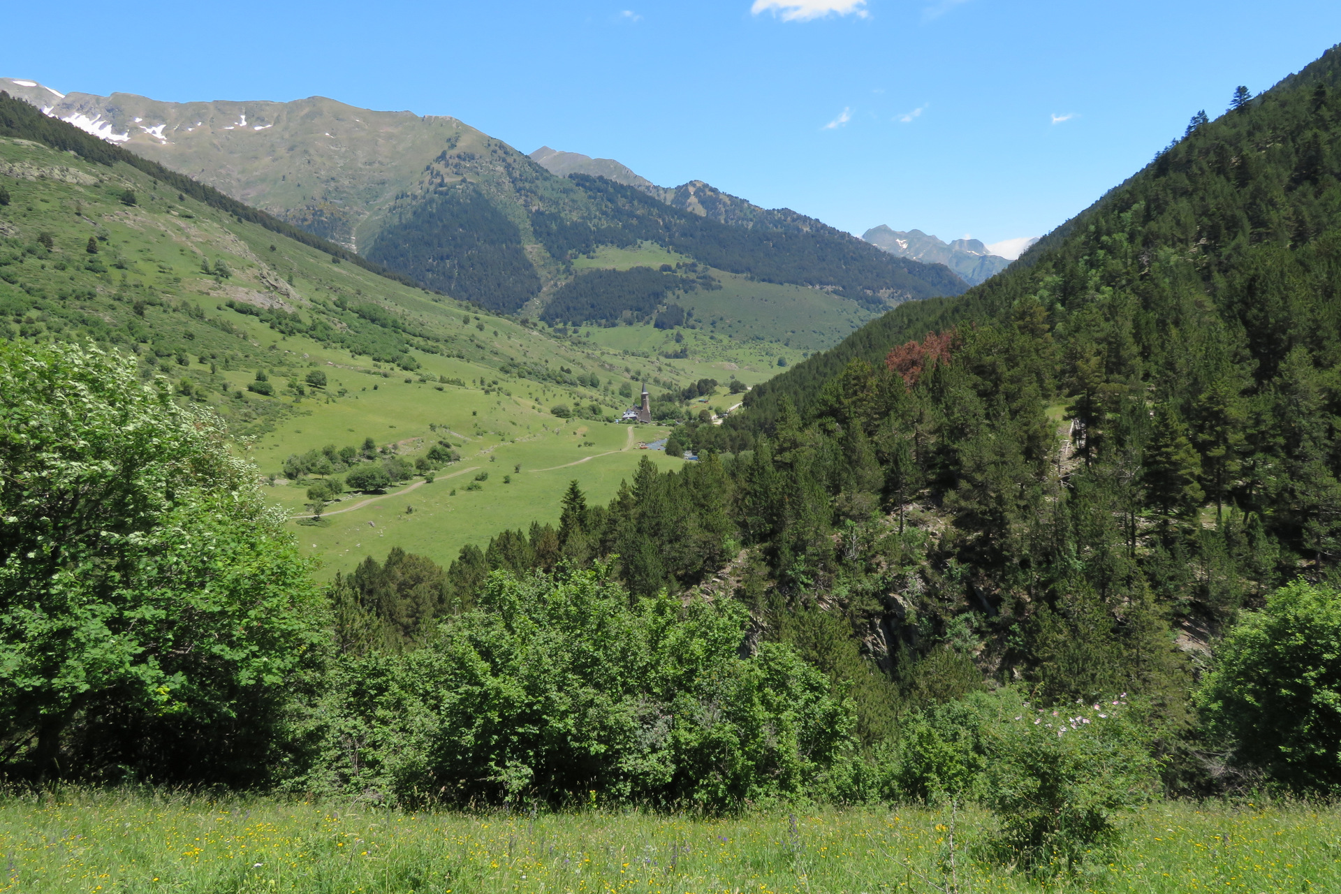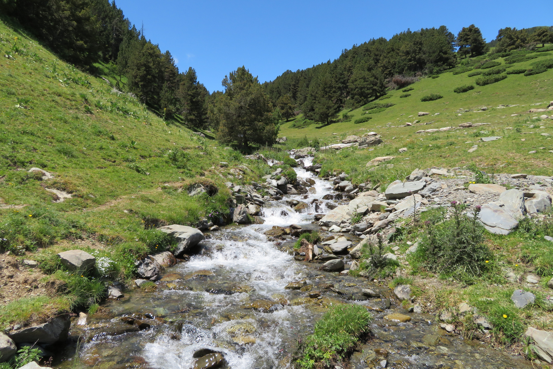 El primer tramo avanza siguiendo el curso del río por la vertiente soleada, a través de extensos prados de alta montaña, zonas de pasto y pinares de pino negro. El camino es ancho, cómodo y bien señalizado. Alcanzado el fondo del valle, se vislumbran los primeros edificios del conjunto de Montgarri: el histórico santuario —originalmente del siglo XII— y la antigua rectoría, actualmente adaptada como refugio de montaña. Montgarri fue durante siglos uno de los núcleos habitados más aislados del Pirineo y hoy destaca por su entorno de gran belleza natural y su relevancia cultural e histórica.
